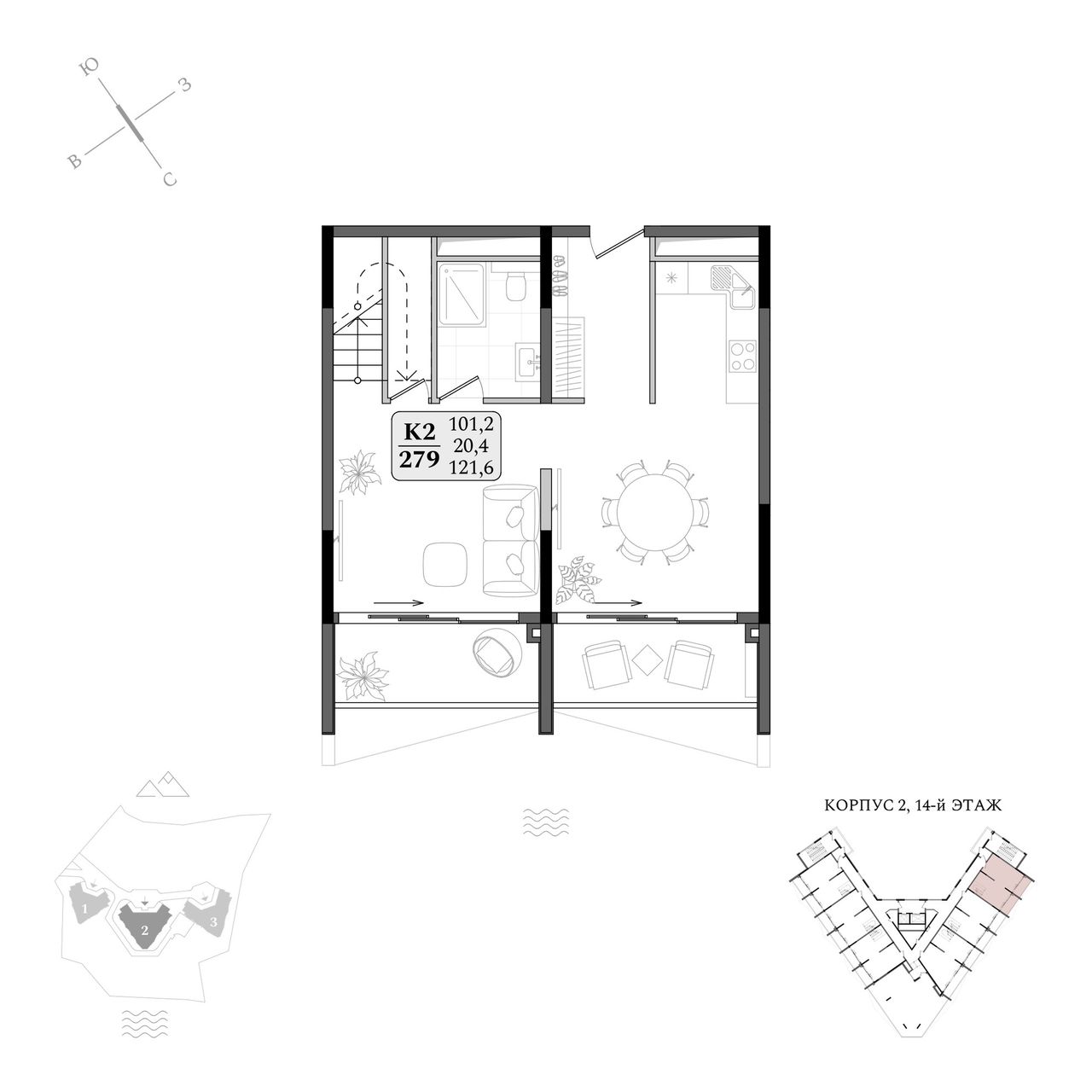 1-комнатная — 121,6 м² 14/14 эт. в LETTO (Летто)