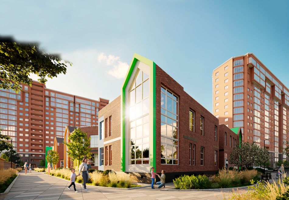 Стильные двухцветные фасады, развитая инфраструктура, 2 детских садика и школа на территории комплекса. Квартиры с собственными террасами и ...