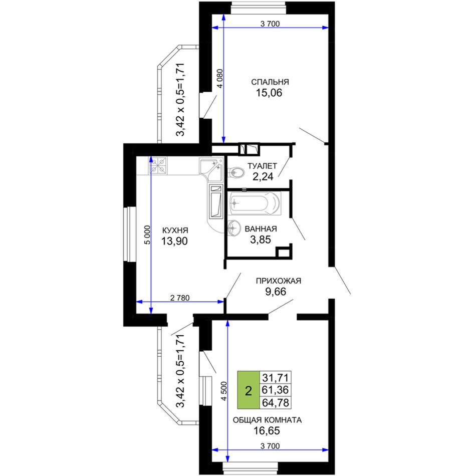 Двухкомнатная квартира в жилом квартале «Лучший» отличается удобной и продуманной планировкой, созданной для максимального комфорта. Обе комнаты расположены по разным сторонам здания — это обеспечивает тишину, уединение и отличное естественное освещение в течение всего дня. Просторная прихожая легко вместит вместительную систему хранения: шкафы, обувницу, зеркала и все необходимое для порядка с самого порога.