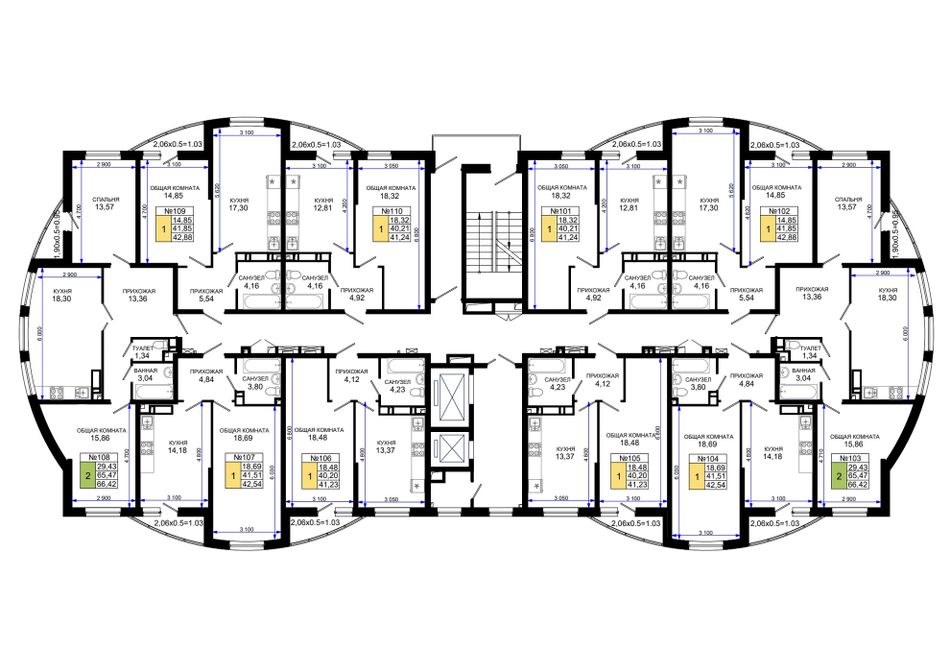 | 2-комн. | 66 - 84 м² | 27,3 - 34,8 млн ₽ |