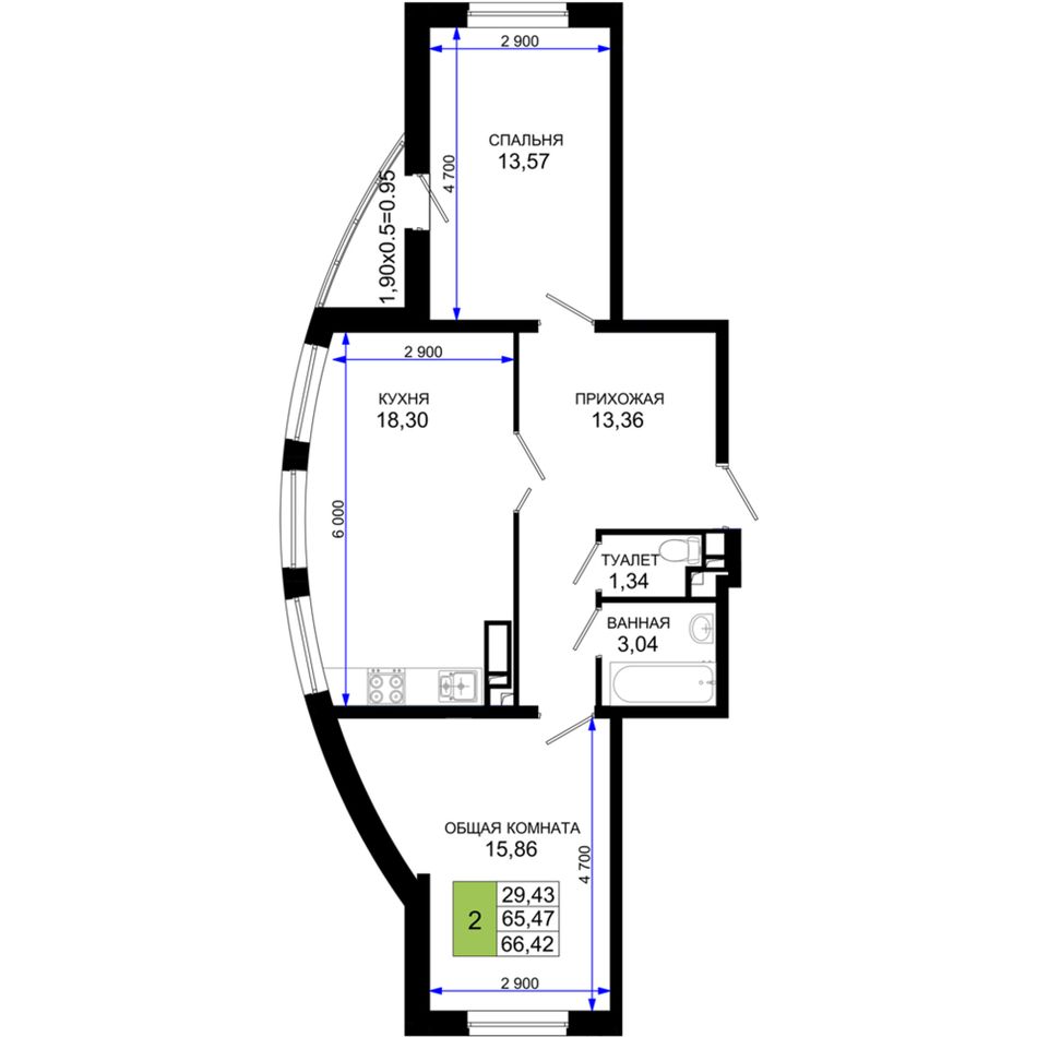 Общая площадь66,3 м²