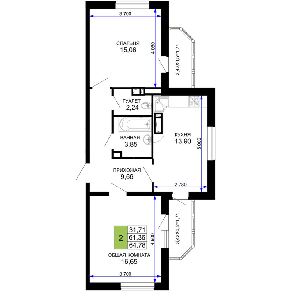 Общая площадь64,1 м²