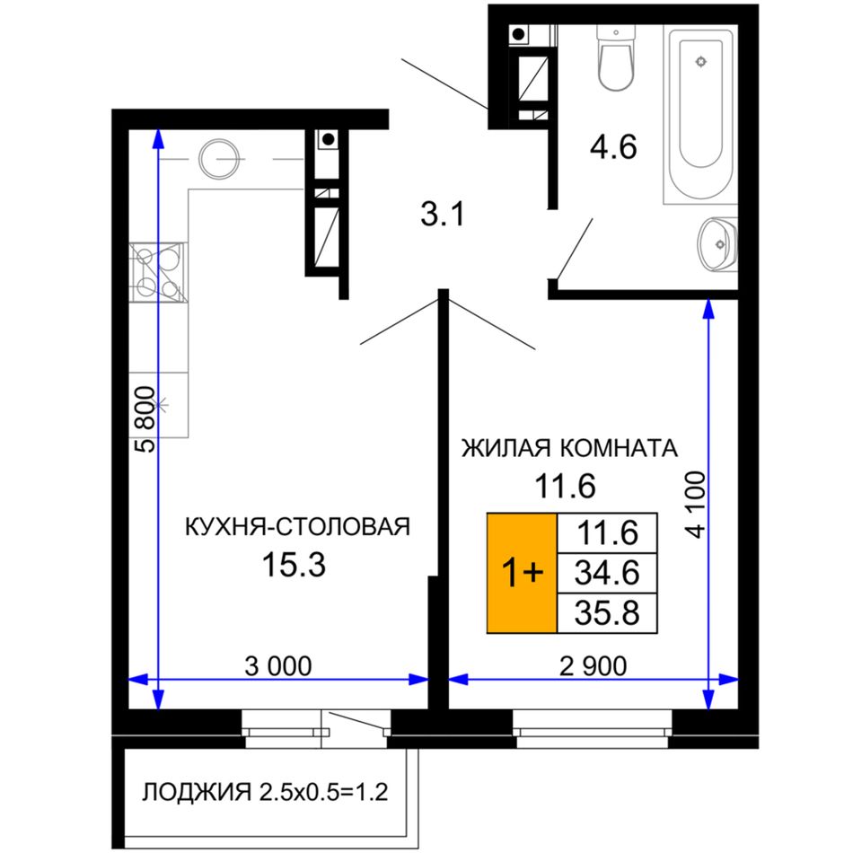 1-комнатная — 36,15 м² 15/16 эт. в Дыхание