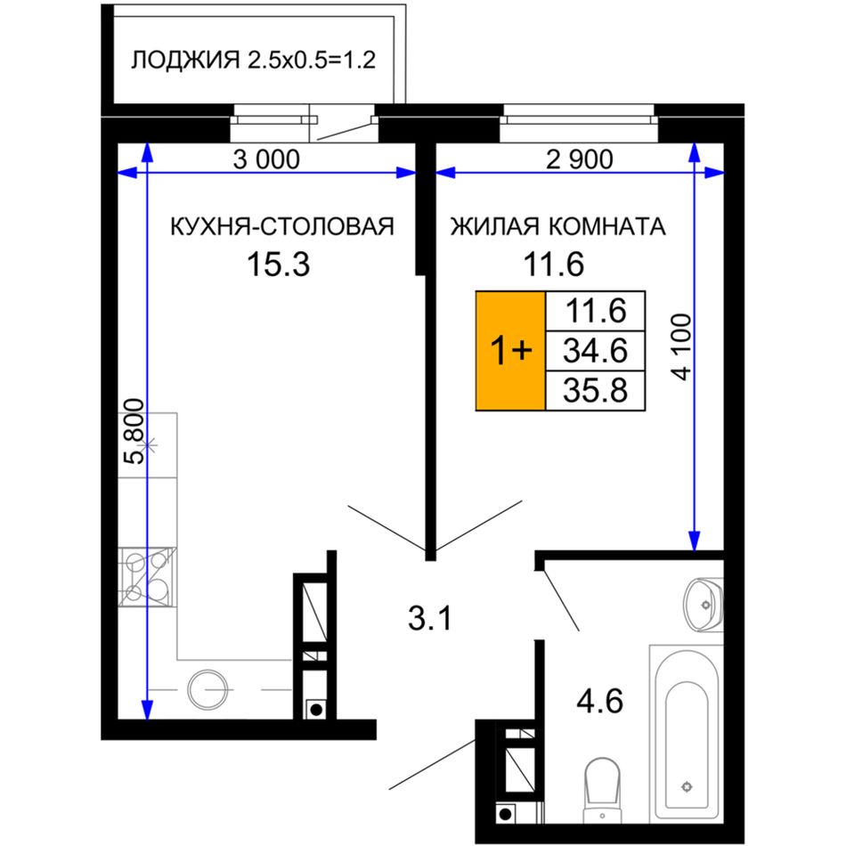 1-комнатная — 36,05 м² 4/16 эт. в Дыхание