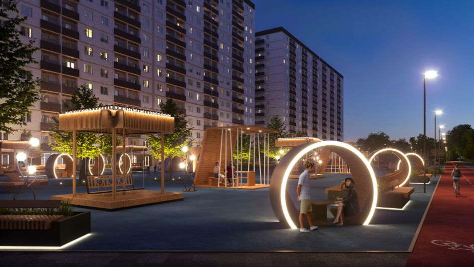Благоустройство ЖК «Дыхание» впечатляет! Три детских садика, школа, большая торговая галерея, яблоневый сад и прогулочные аллеи с перголами - все это создано с заботой для жильцов нового ЖК.