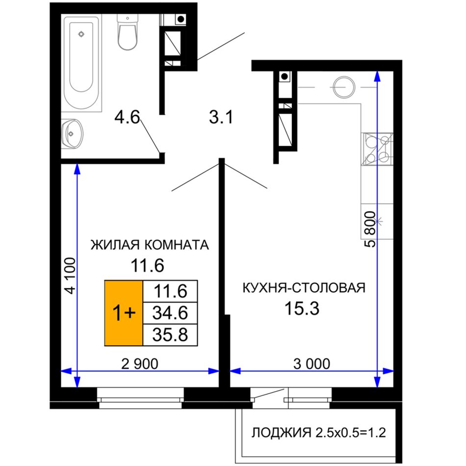 Кухня15,3 м²