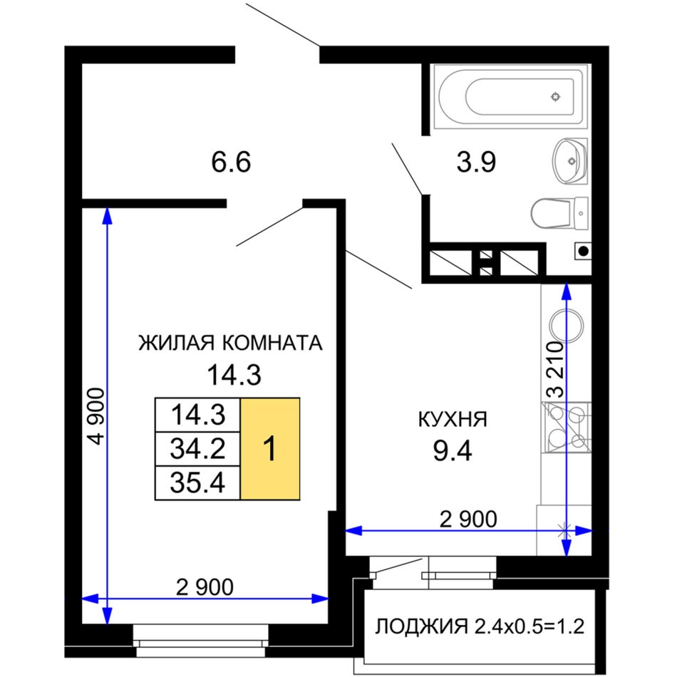 1-комнатная — 35,9 м² 16/16 эт. в Дыхание