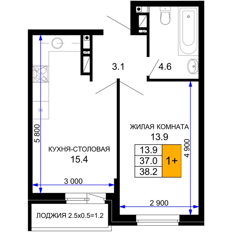 1-комнатная — 38,65 м² 16/16 эт. в Дыхание