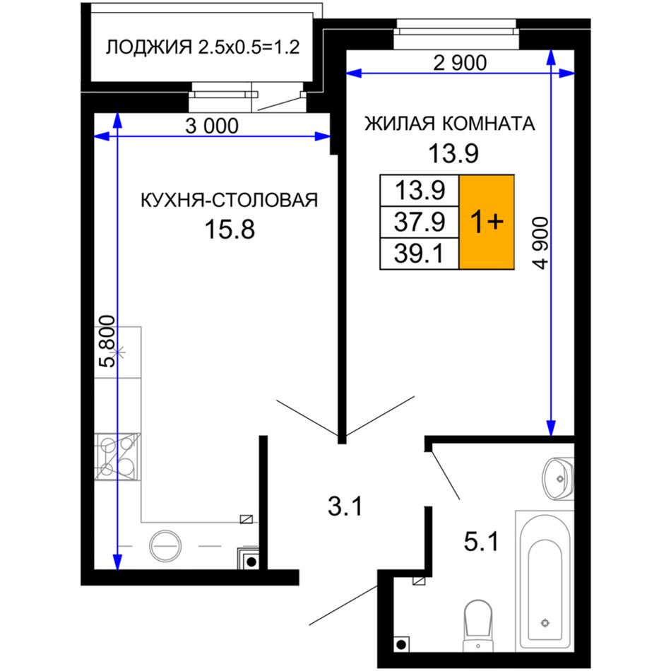 1-комнатная — 39,35 м² 2/16 эт. в Дыхание