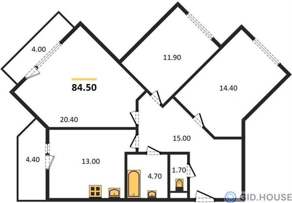 3-комнатная — 84,5 м² 2/22 эт. в Парк у дома