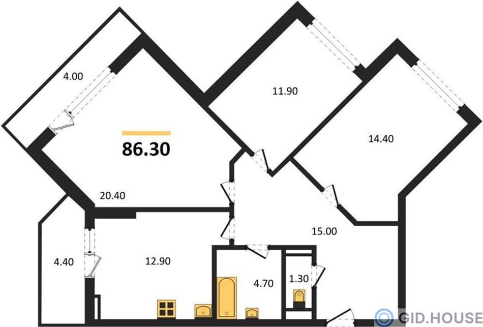 Общая площадь86,3 м²