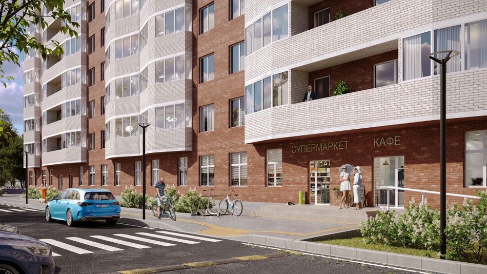 Современный фасад в приятной цветовой гамме с витражным остеклением, коммерция, живописные виды из окон квартир, оборудованные детские и спо...