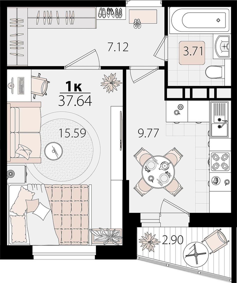 | 1-комн. | 37 м² | 6,5 - 6,6 млн ₽ |