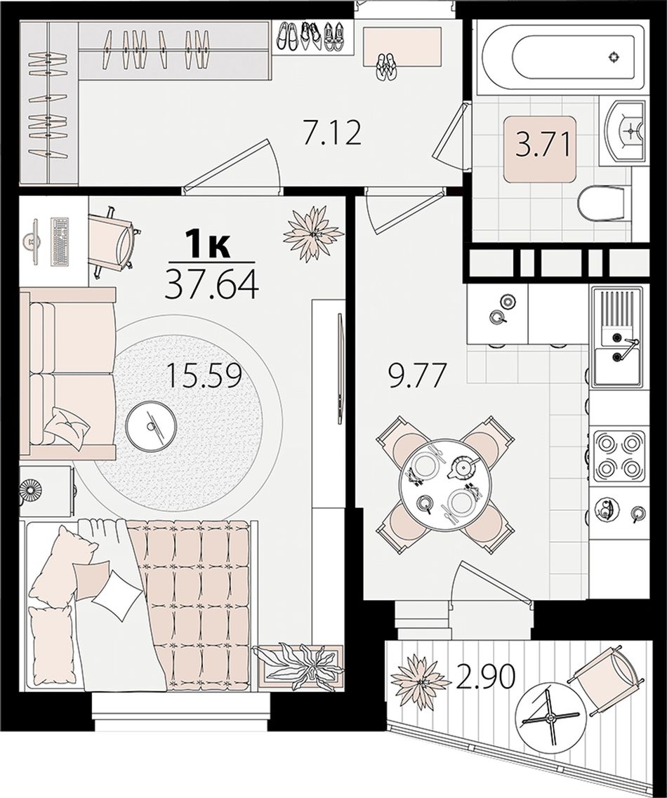 | 1-комн. | 37 м² | 6,5 - 6,6 млн ₽ |