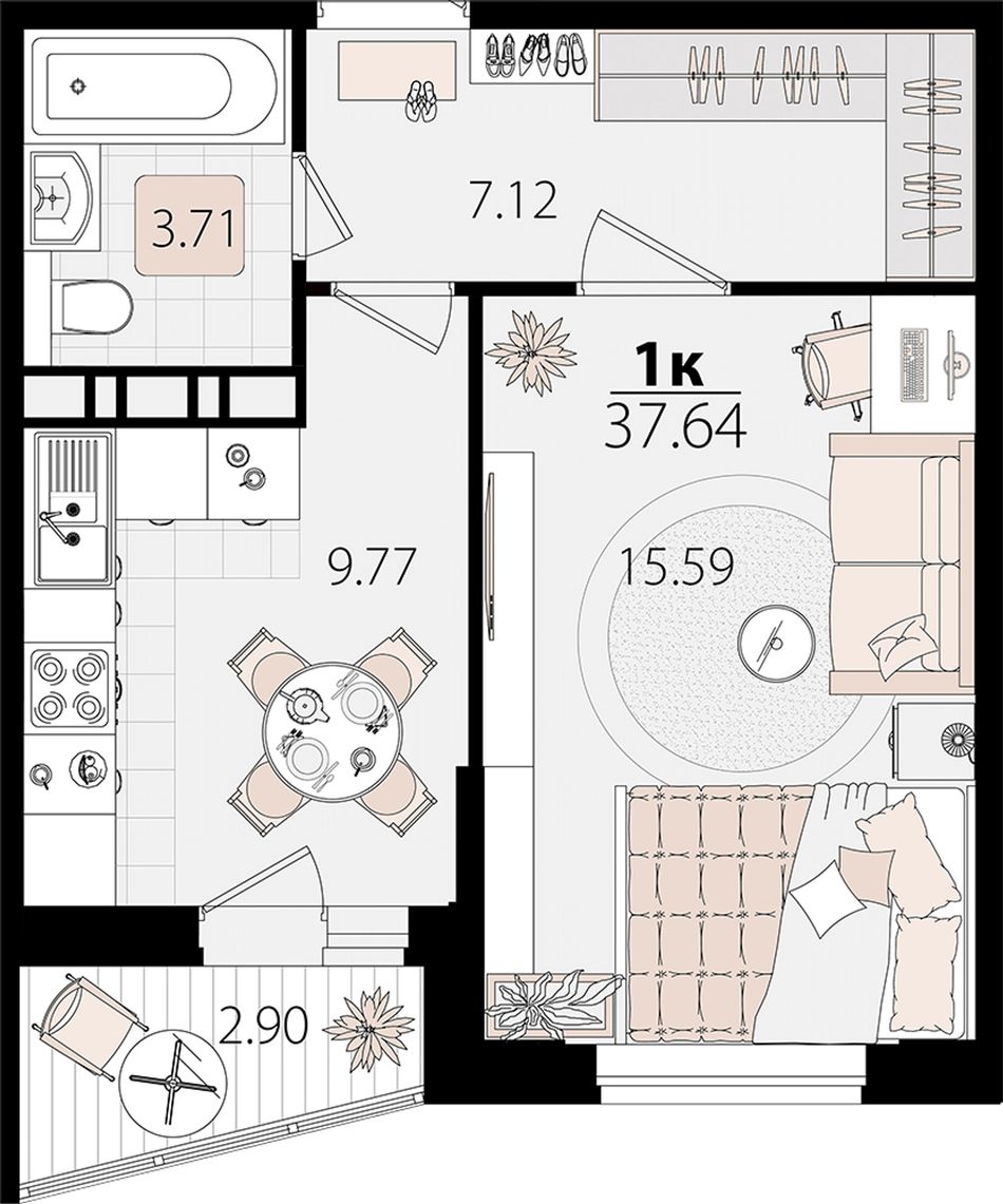 | 1-комн. | 37 м² | 6,5 - 6,6 млн ₽ |