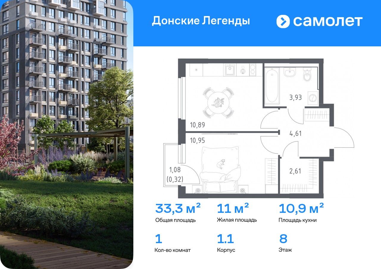 1-комнатная — 33,31 м² 8/17 эт. в Донские легенды
