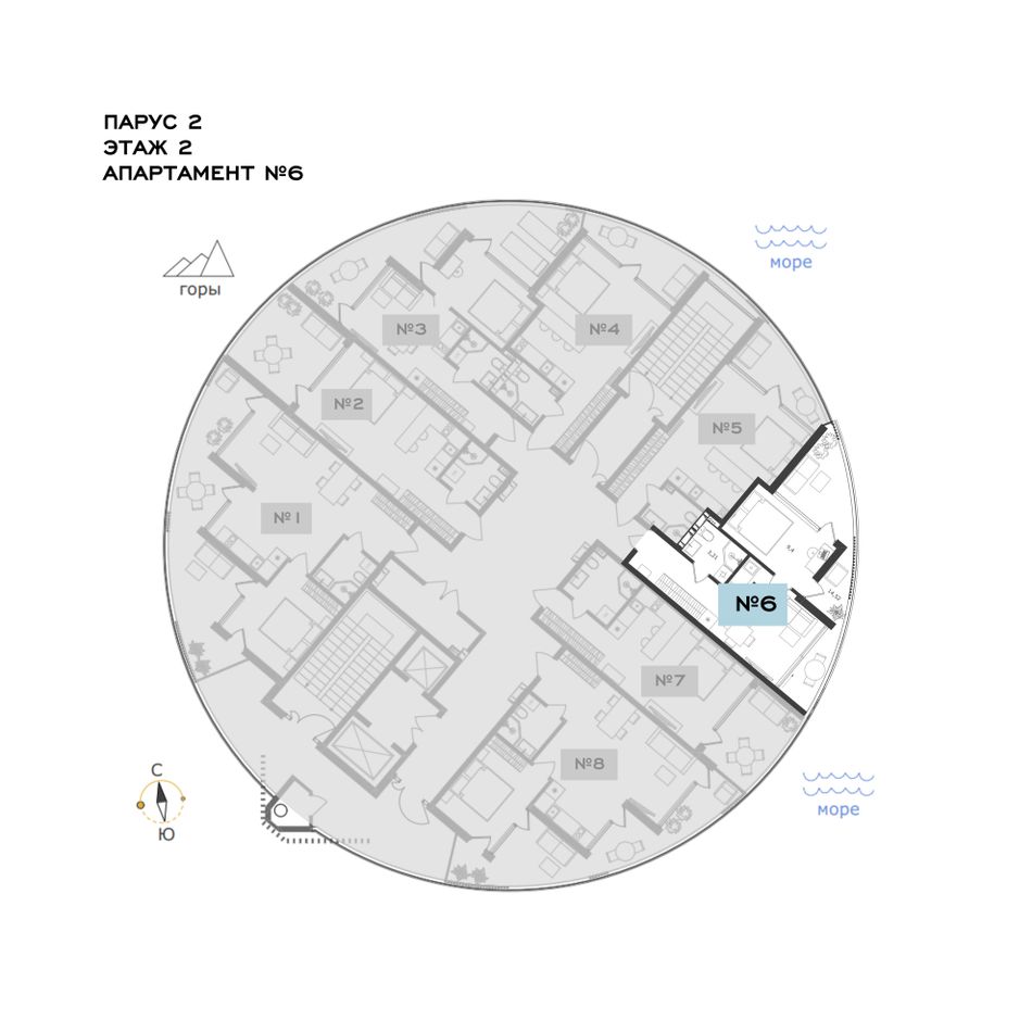 Продаются апартаменты общей площадью 45,66 м2 в премиальном гостиничном комплексе апартаментов «Паруса мечты» в историческом районе г. Алушты.