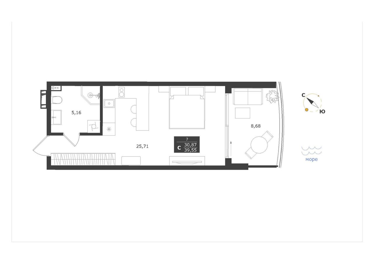 Студия — 39,55 м² 2/11 эт. в Паруса мечты