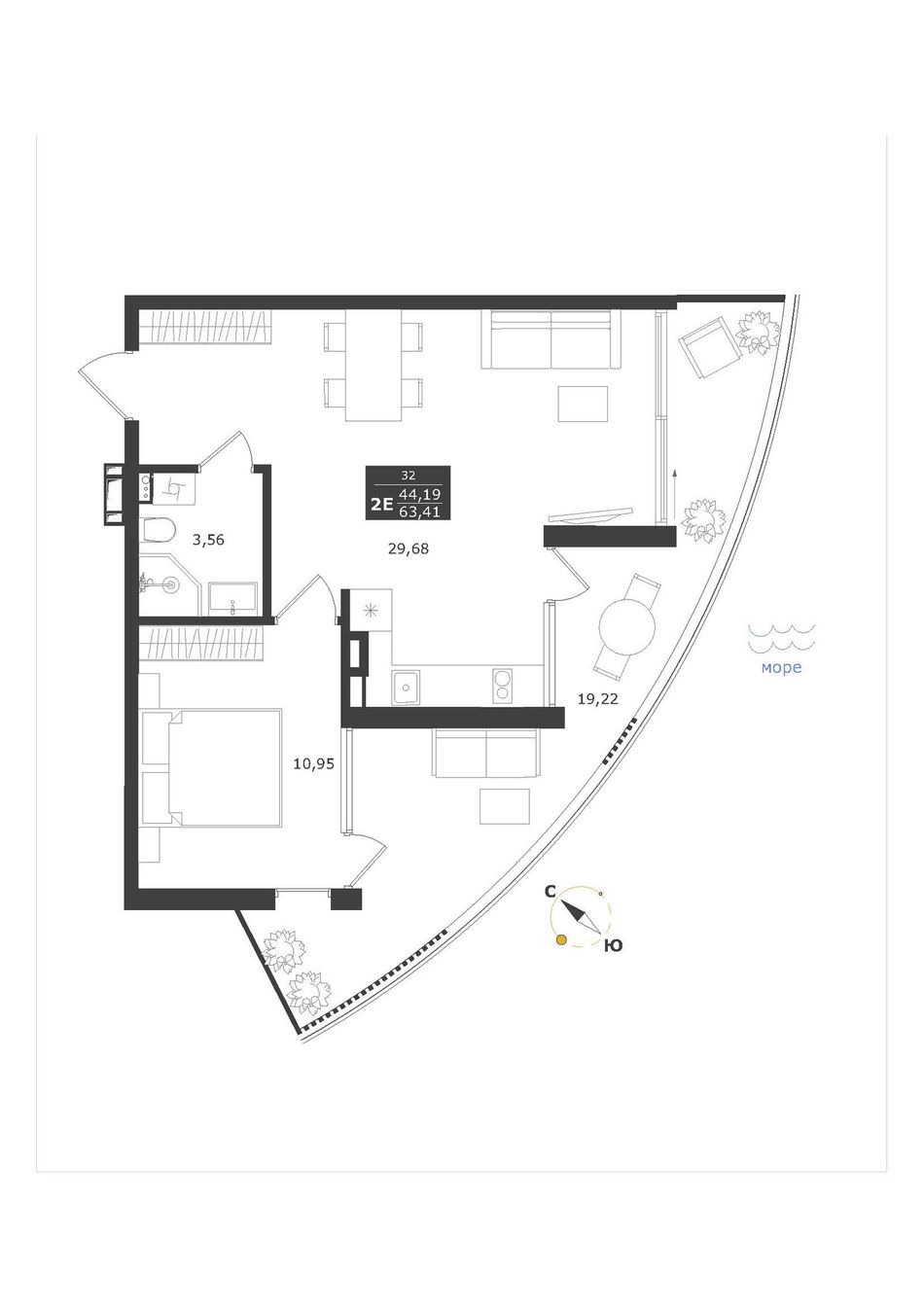 2-комнатная — 63,41 м² 5/11 эт. в Паруса мечты