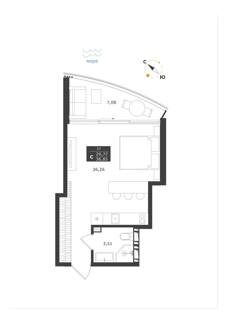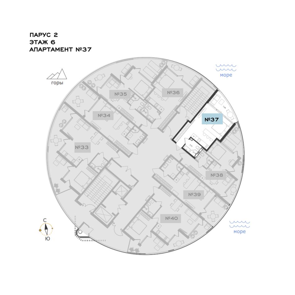 Студия — 36,85 м² 6/11 эт. в Паруса мечты