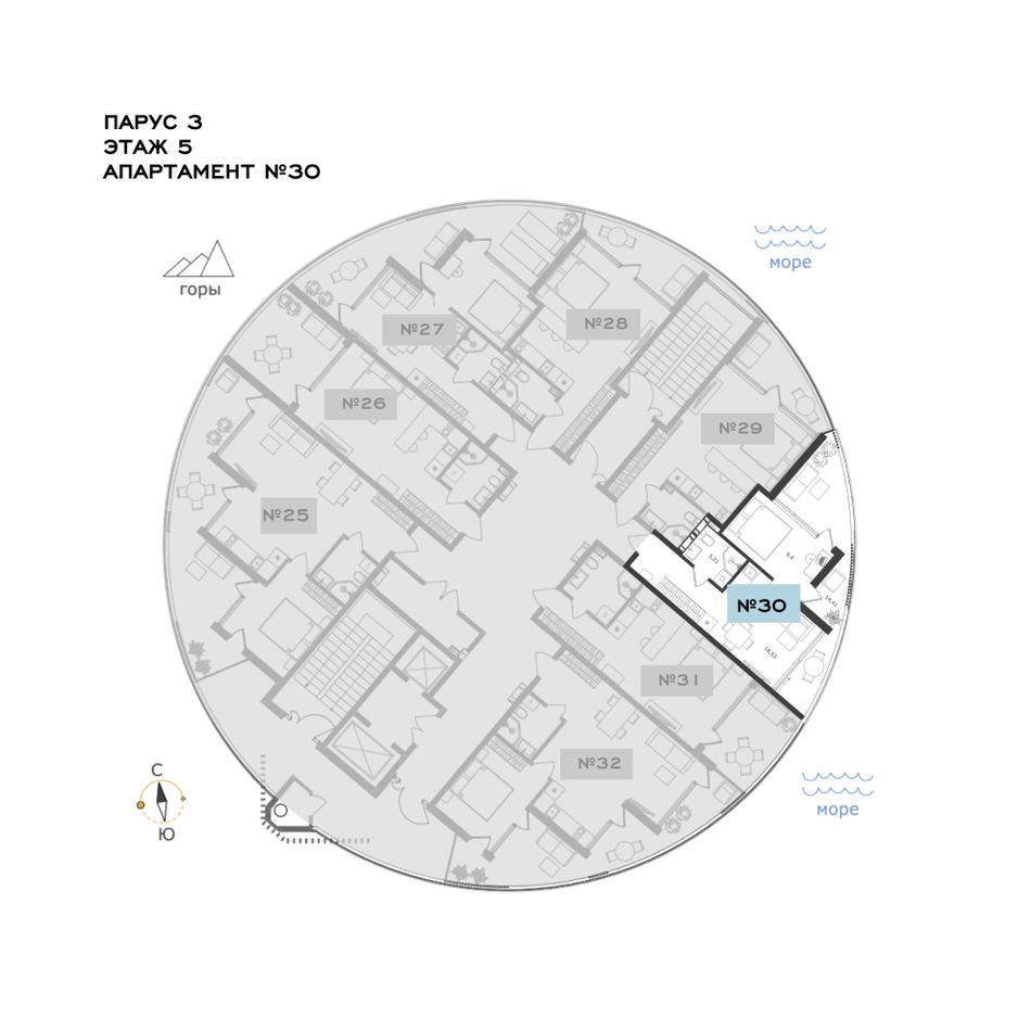 Продаются апартаменты общей площадью 60,12 м2 в премиальном гостиничном комплексе апартаментов «Паруса мечты» в историческом районе г. Алушты.