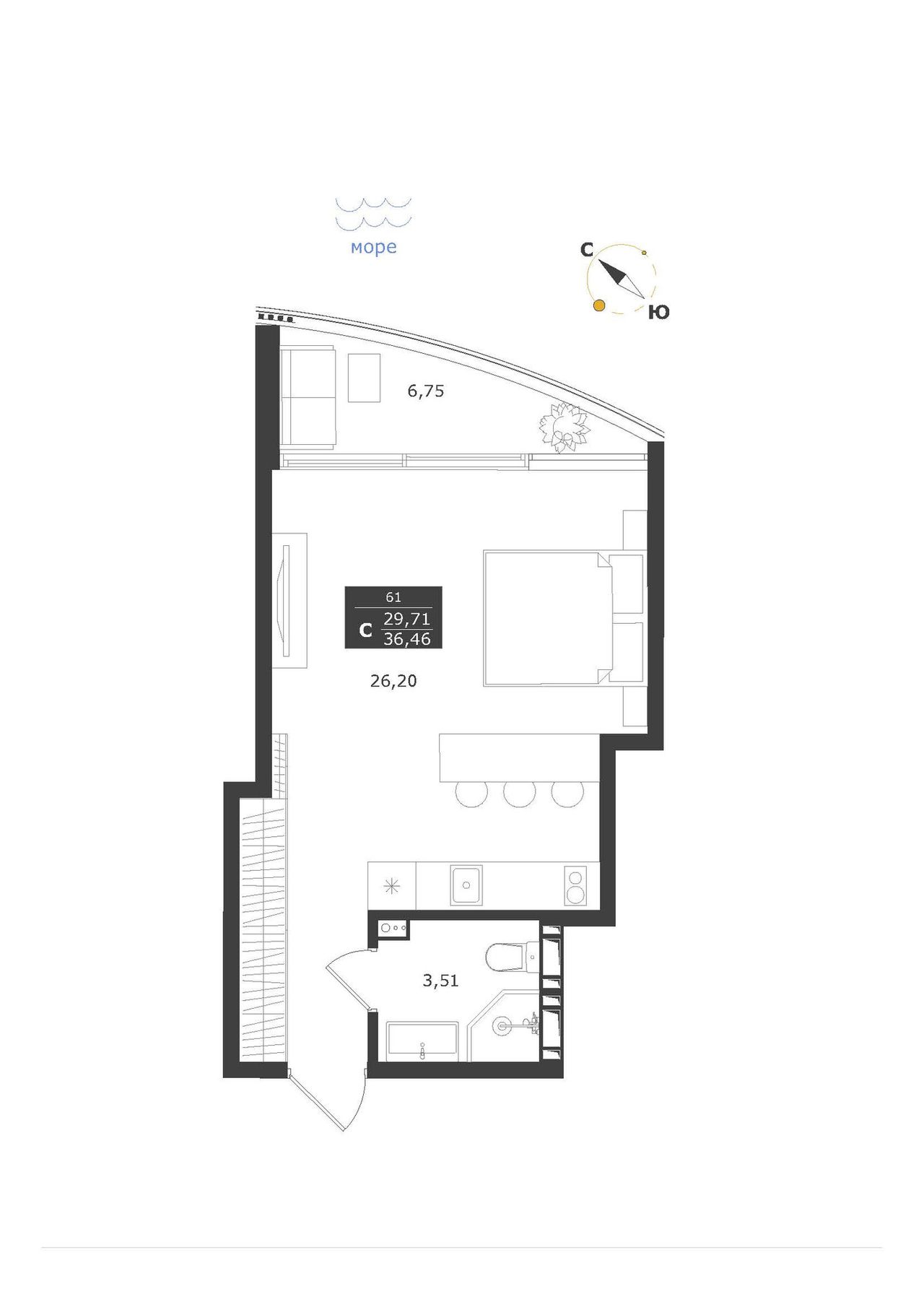 Студия — 36,46 м² 9/11 эт. в Паруса мечты