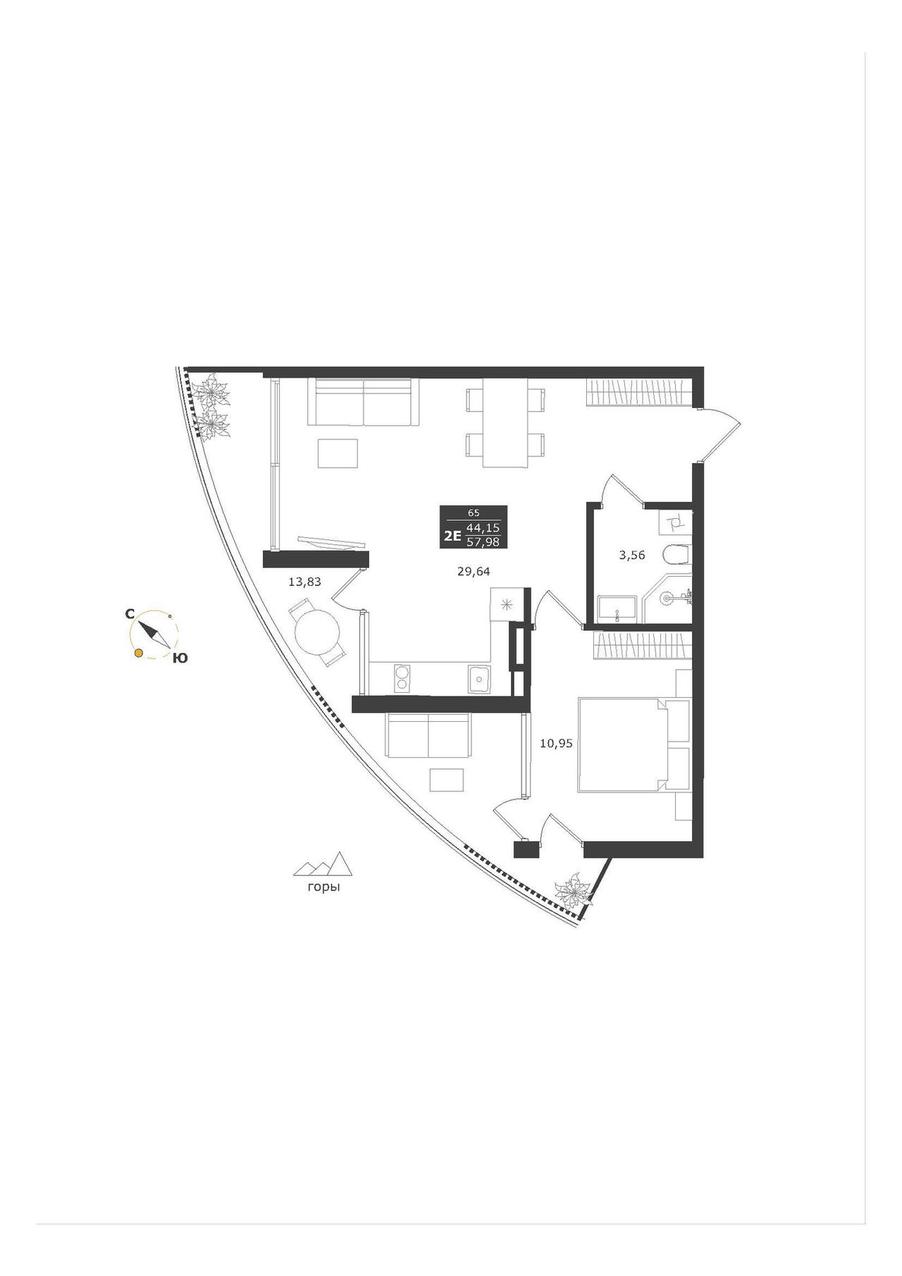 2-комнатная — 57,98 м² 10/11 эт. в Паруса мечты