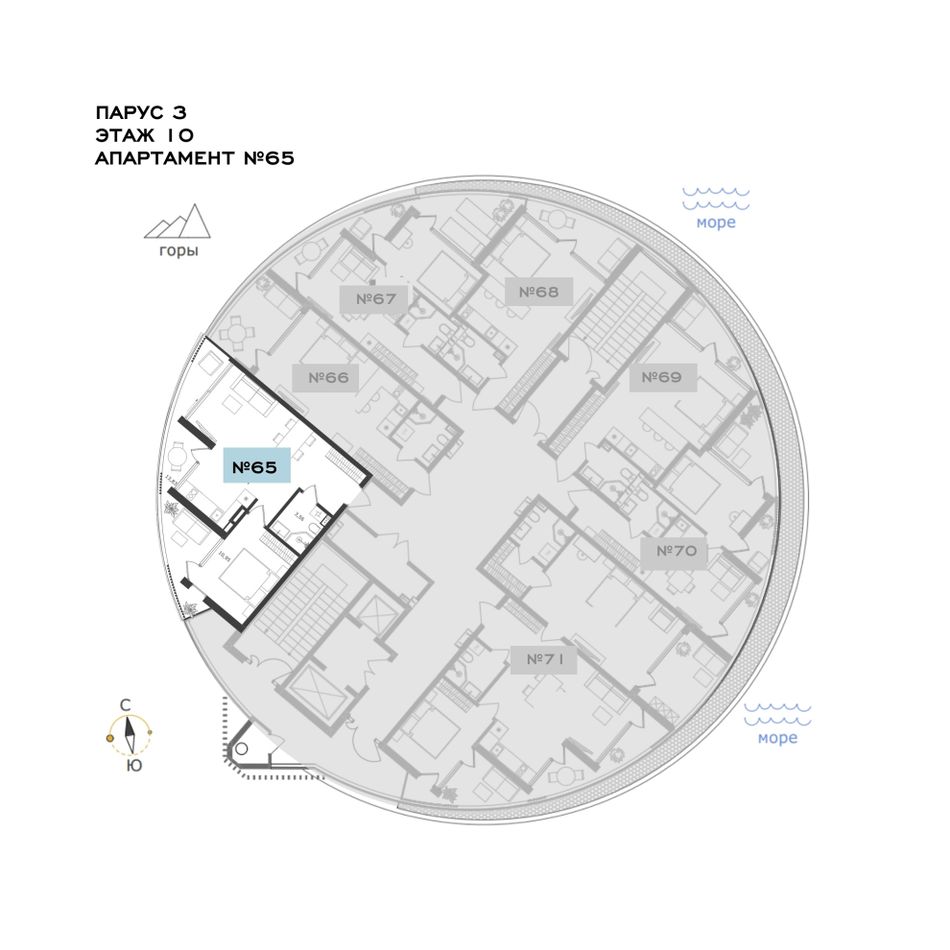 Продаются апартаменты общей площадью 57,98 м2 в премиальном гостиничном комплексе апартаментов «Паруса мечты» в историческом районе г. Алушты.