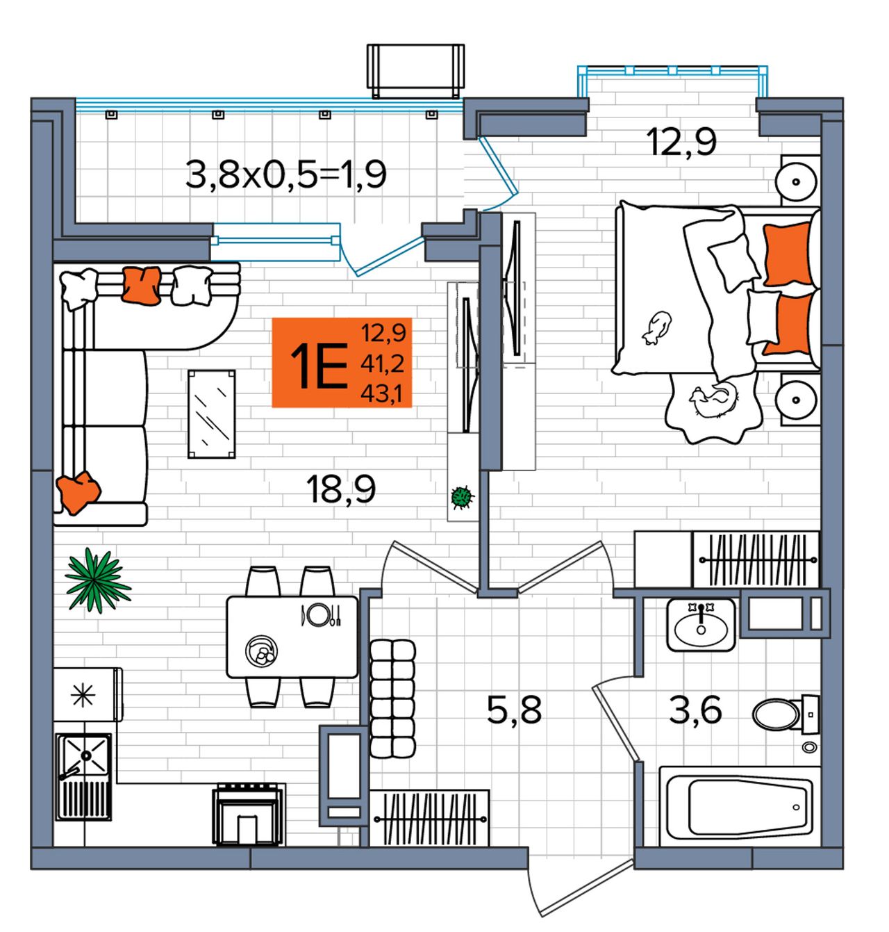 Общая площадь43,1 м²