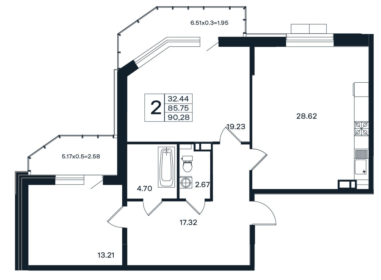 Общая площадь90,28 м²