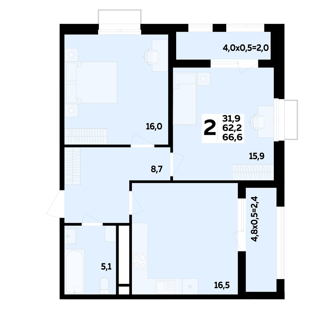 2-комнатная — 66,6 м² 3/16 эт. в МЕГАСИТИ