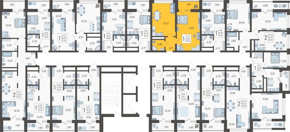 | 1-комн. | 40 - 58 м² | 7,2 - 8,2 млн ₽ |