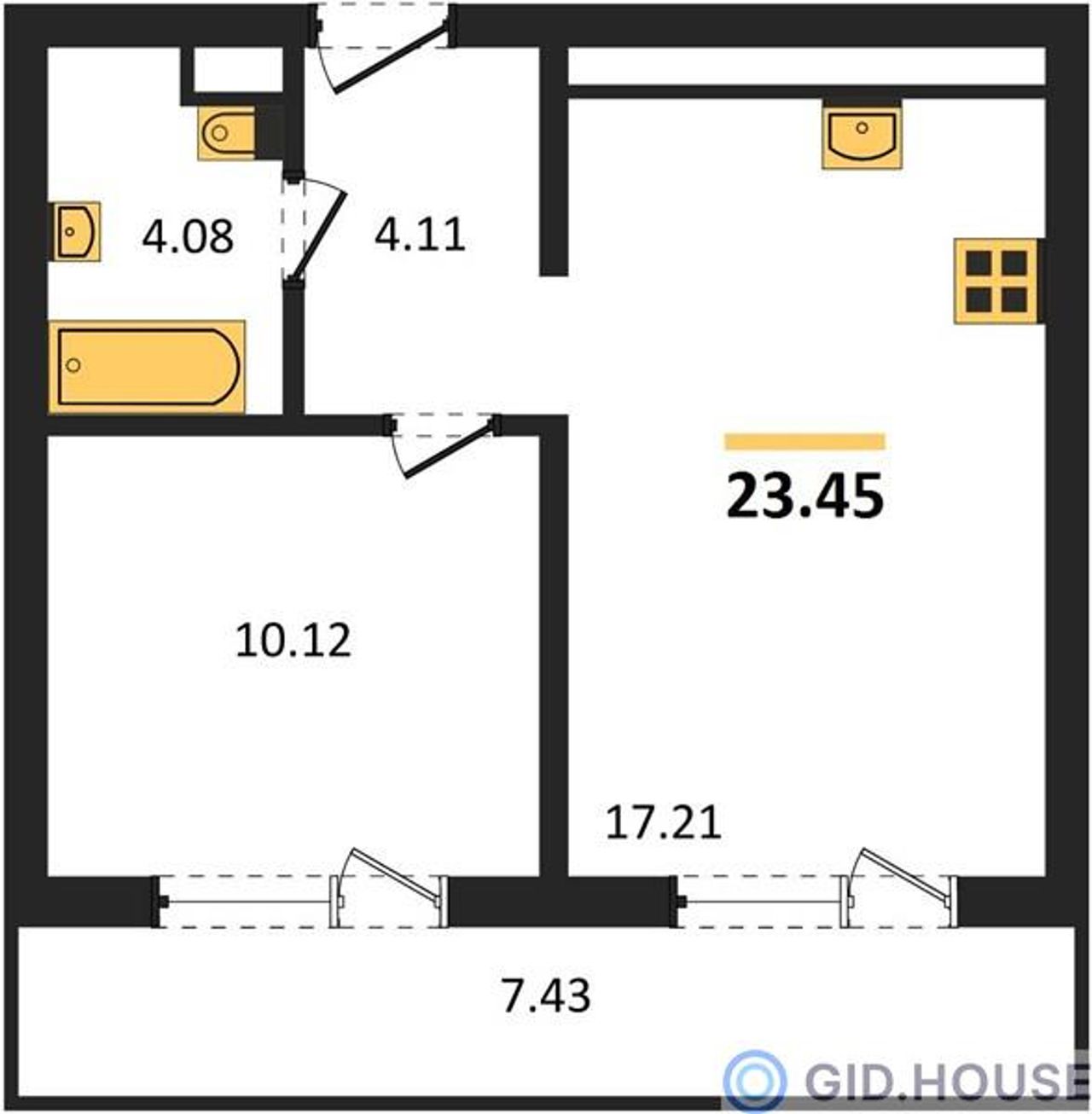 Общая площадь23,45 м²