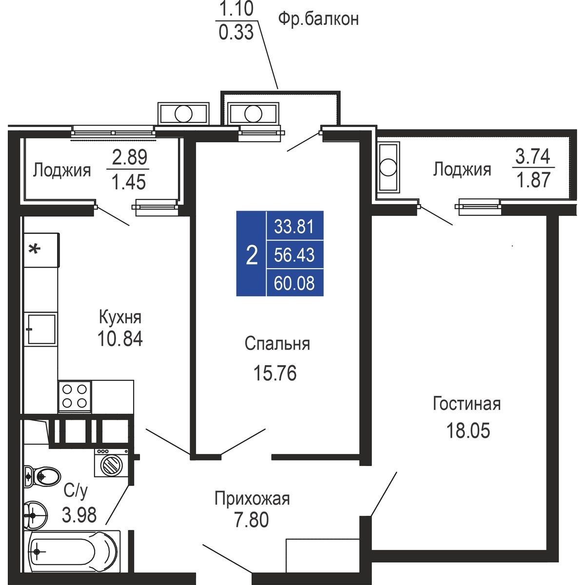 Общая площадь60,08 м²