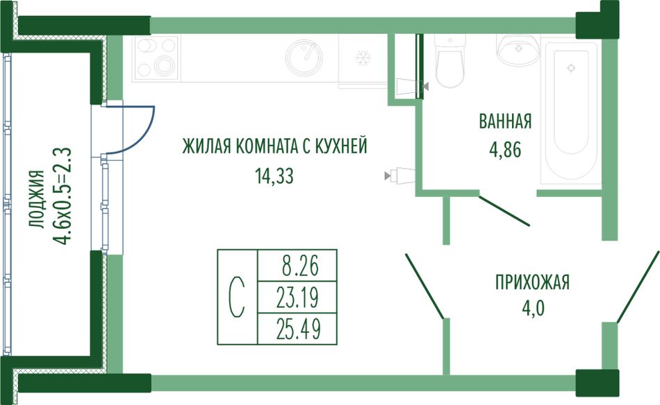 | Студия | 25 - 26 м² | 6,1 - 7,8 млн ₽ |