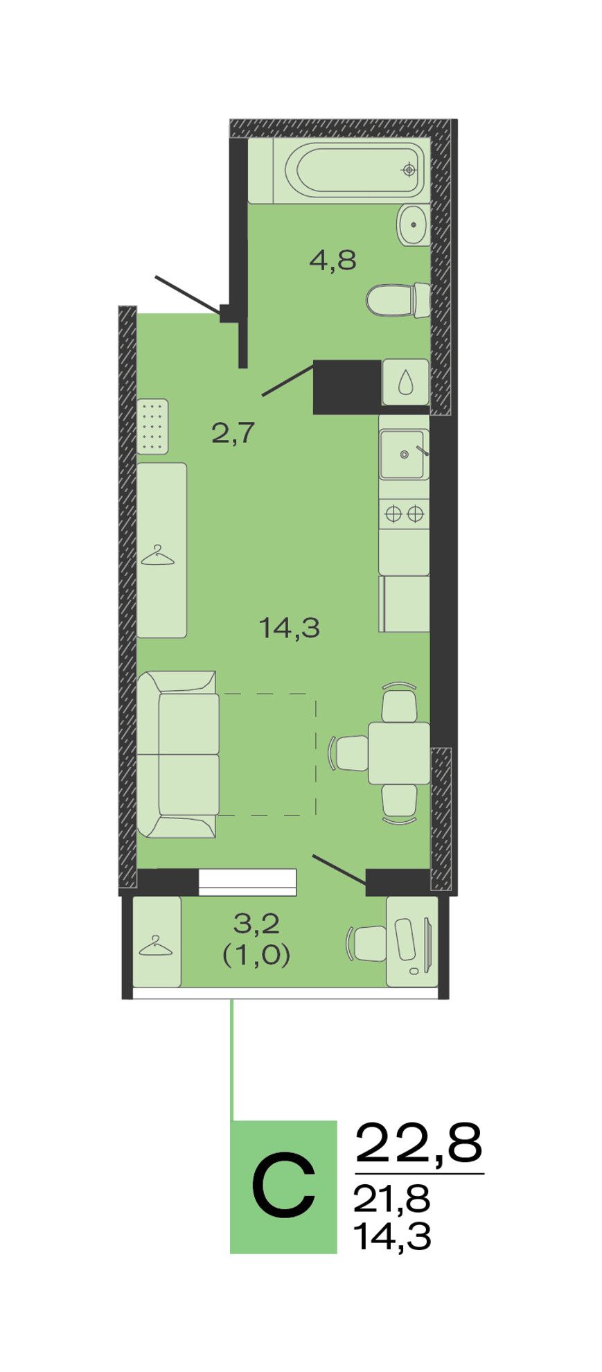 Студия — 22,8 м² 3/4 эт. в Дзенпарк