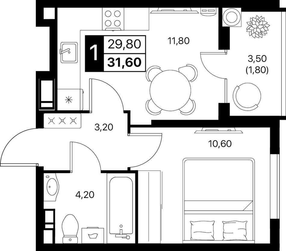 Общая площадь31,6 м²