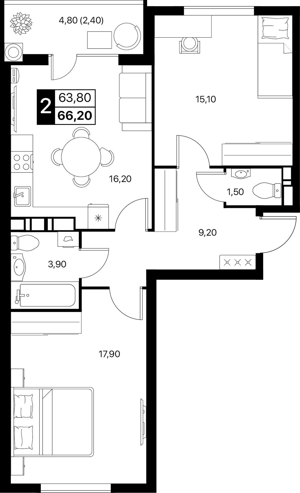 Общая площадь66,2 м²