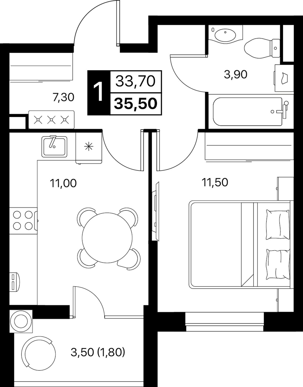 Общая площадь35,5 м²