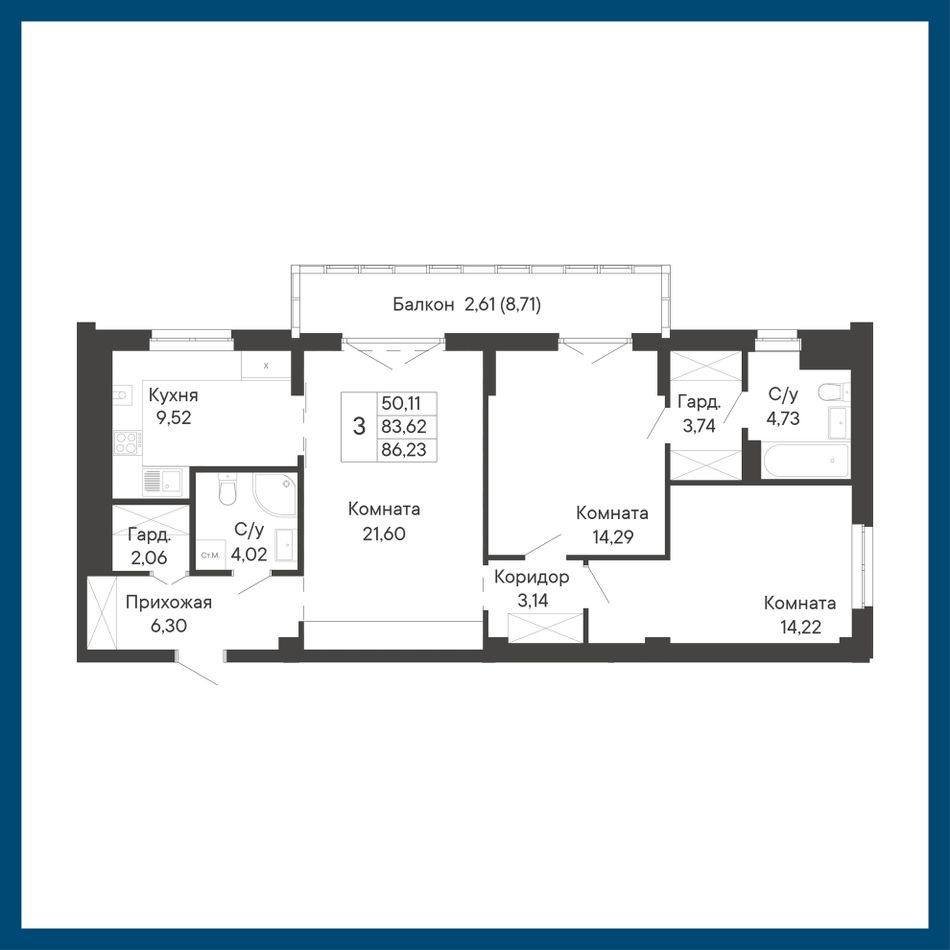 3-комнатная — 86,23 м² 3/8 эт. в Ривьера