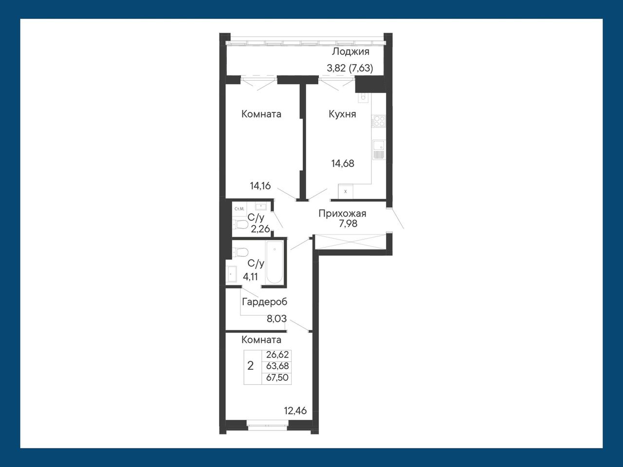 2-комнатная — 67,5 м² 3/8 эт. в Ривьера