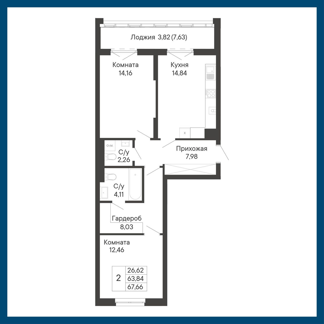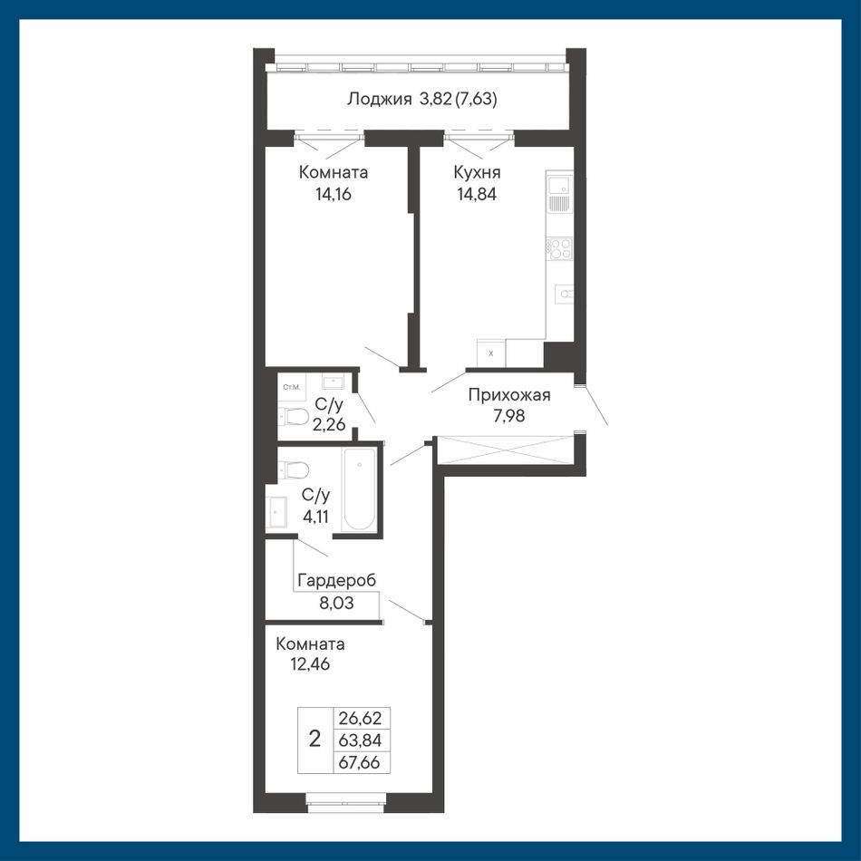 Общая площадь67,66 м²