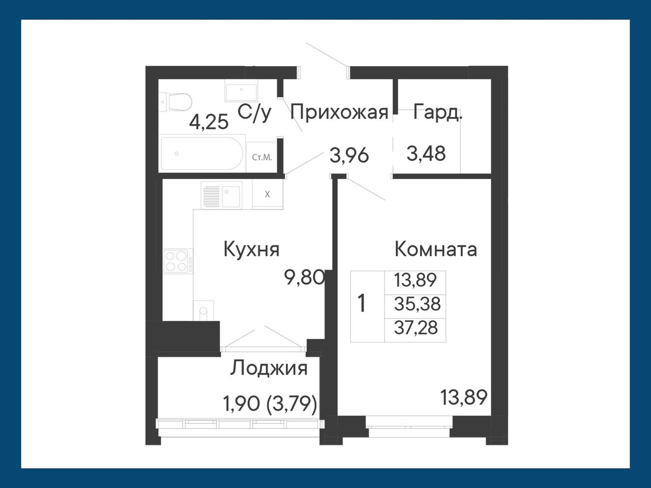 Общая площадь37,28 м²