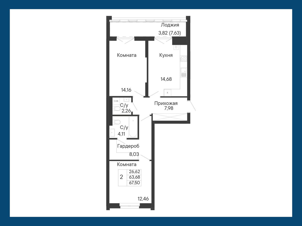 2-комнатная — 67,5 м² 4/8 эт. в Ривьера