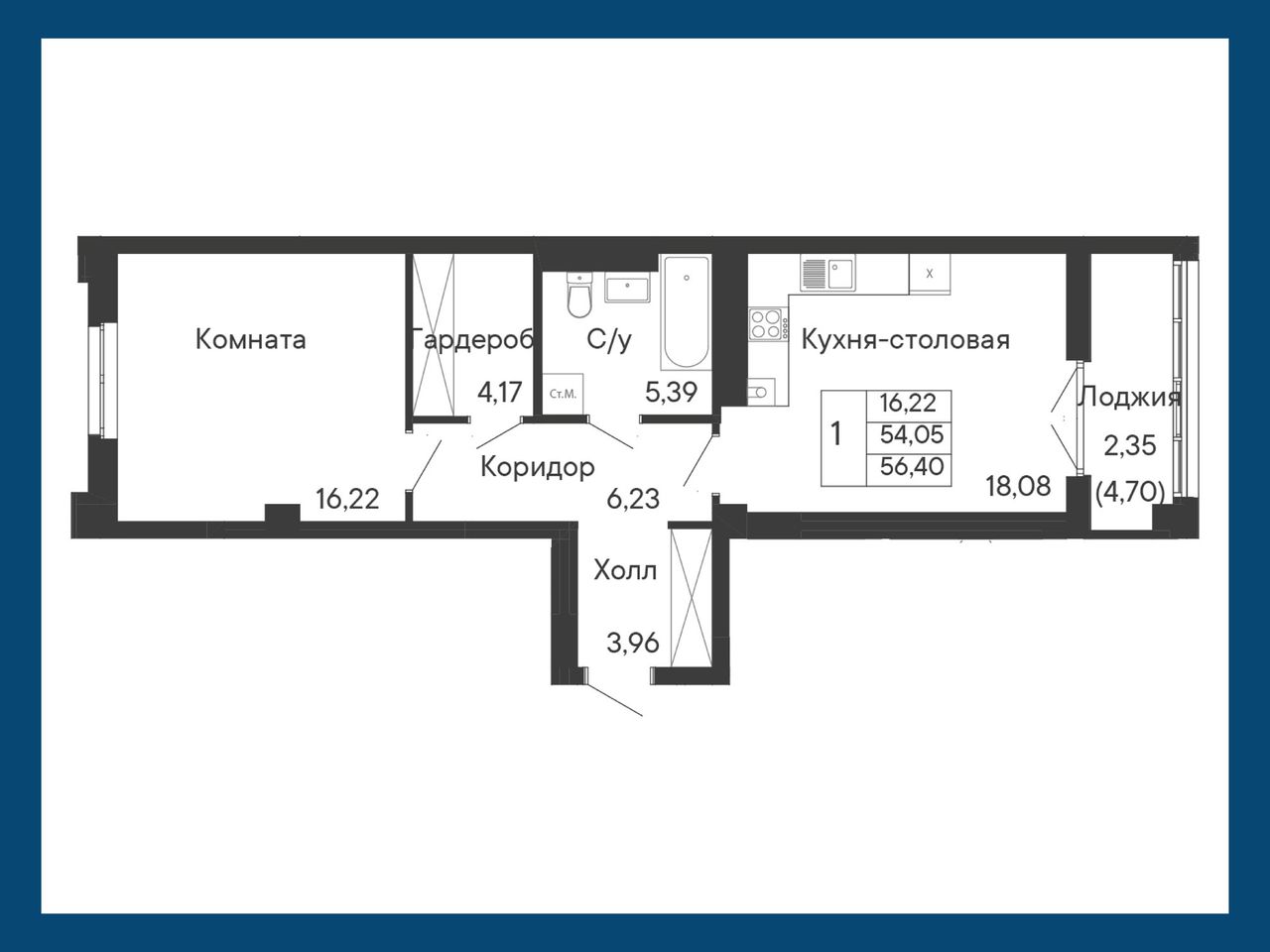 Общая площадь56,4 м²