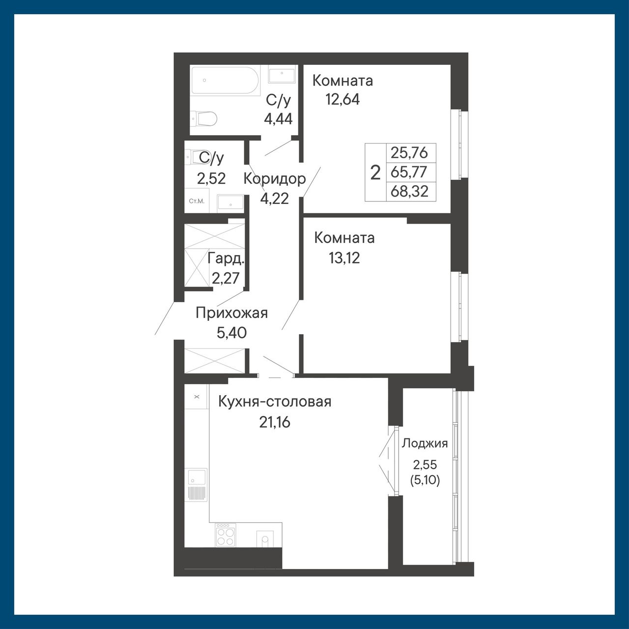 2-комнатная — 68,32 м² 6/8 эт. в Ривьера