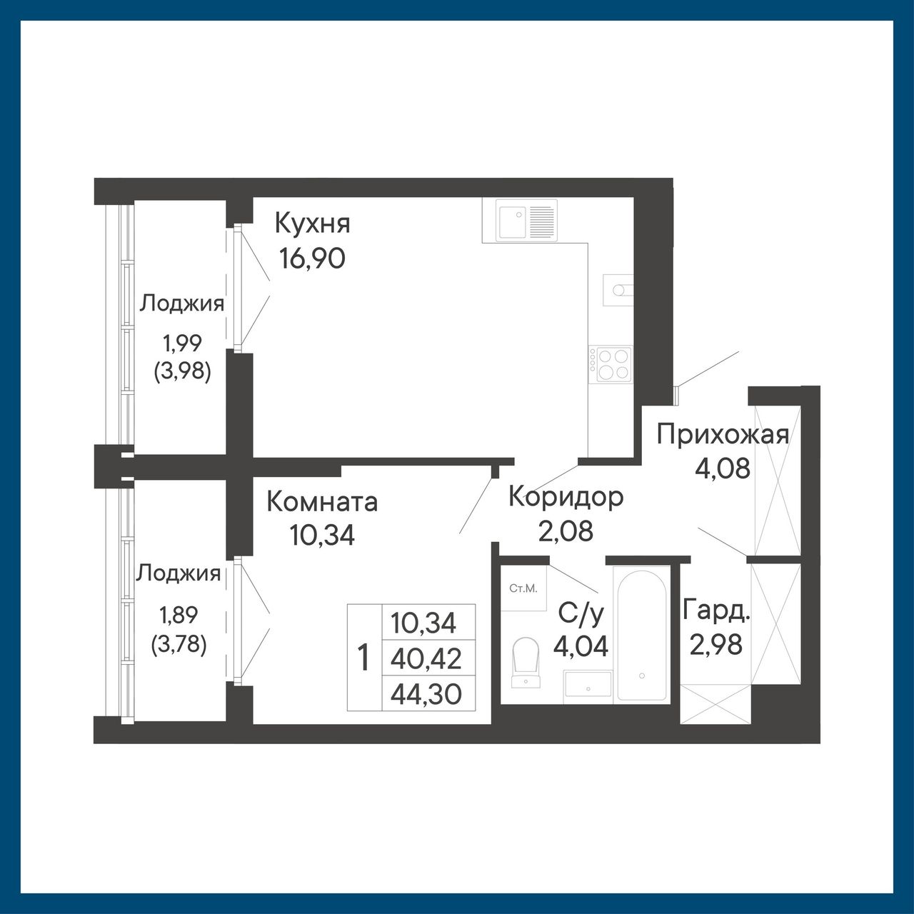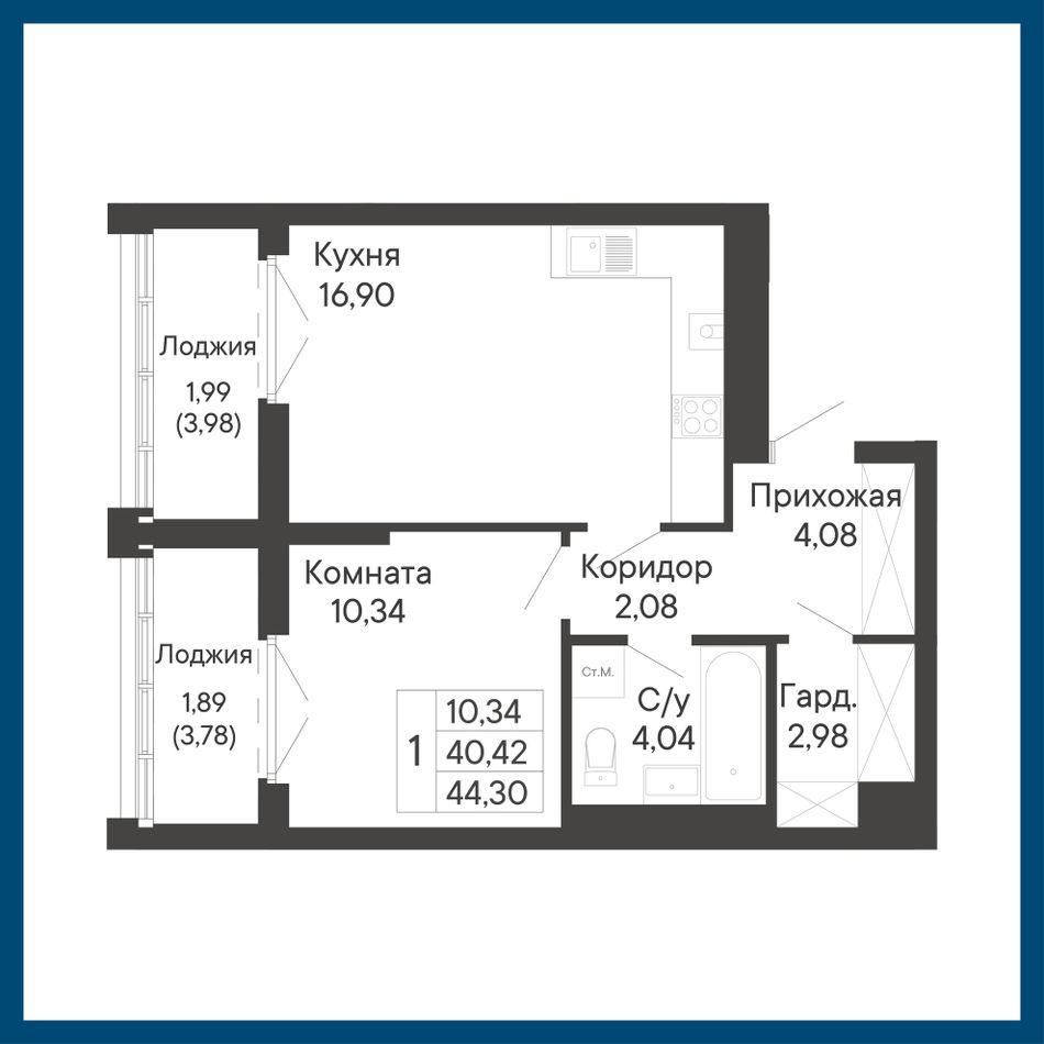 Общая площадь44,3 м²
