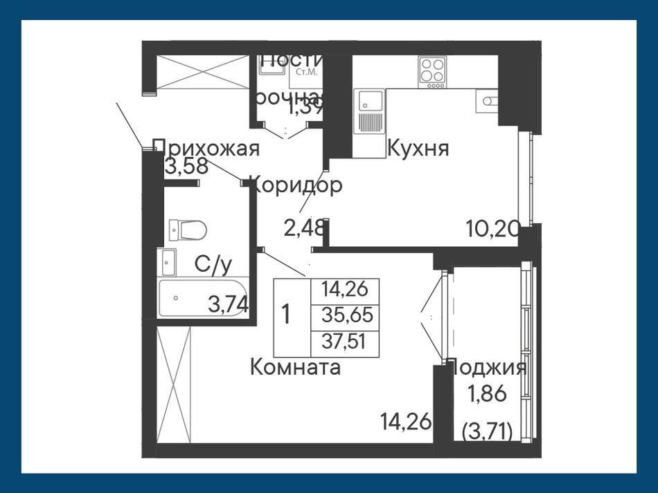 Общая площадь37,51 м²
