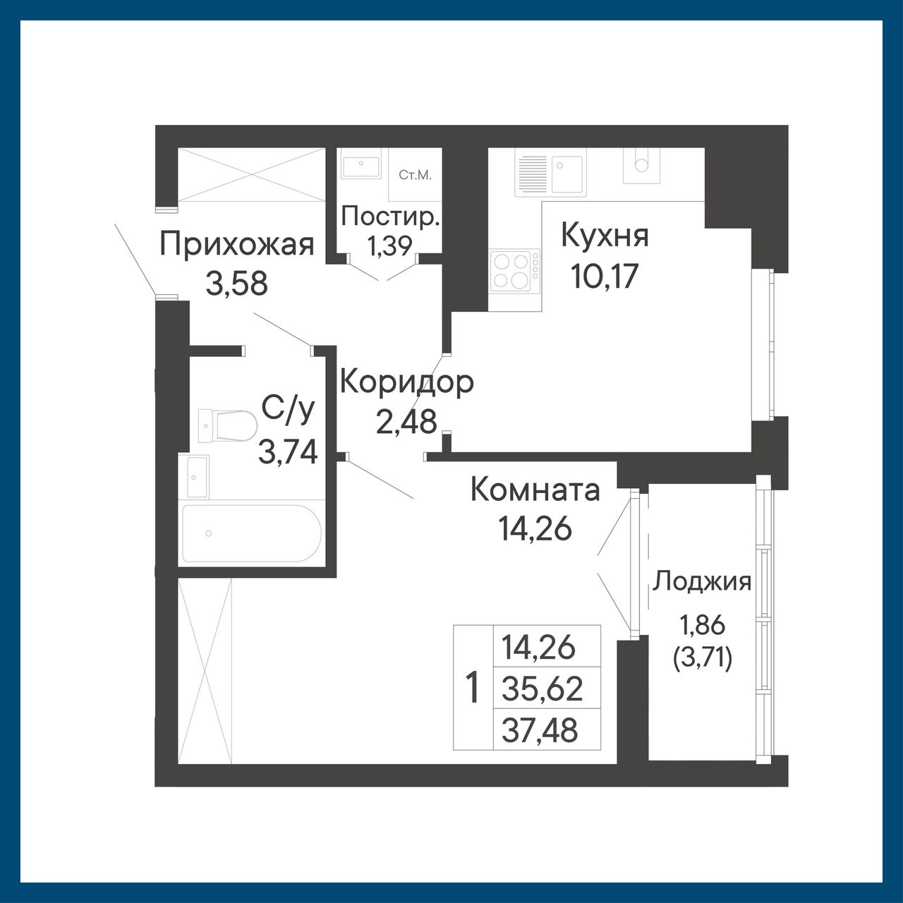 Общая площадь37,48 м²