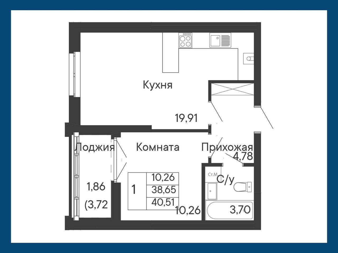 1-комнатная — 40,51 м² 6/8 эт. в Ривьера